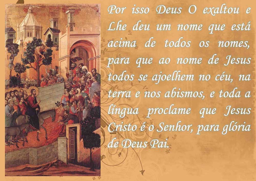 Todos os cristãos, por serem seguidores de Cristo, devem viver e orientar-se pelos mesmos valores que marcaram a existência de Cristo. No entanto, muitas vezes nós assemelhamo-nos à comunidade de Filipos, a quem era dirigida, a carta da segunda leitura deste domingo. Na verdade, como os filipenses nós podemos ser uma comunidade entusiasmada, generosa e comprometida mas também uma comunidade para quem o desprendimento, a humildade e a simplicidade não são valores apreciados. A esta comunidade e também a nós Paulo apresenta-nos um antigo hino litúrgico que mostra o aniquilamento de Cristo: ele que era de condição divina fez-se homem e fazendo-se homem humilhou-se ainda mais até à morte na cruz. Todos nós ao contemplarmos Cristo crucificado estamos chamados a seguir o exemplo de humildade, simplicidade e entrega da vida de Cristo. E podemos ter a certeza que este caminho não levará ao aniquilamento mas à Ressurreição: “Por isso Deus o exaltou e lhe deu um nome que está acima de todos os nomes.”
