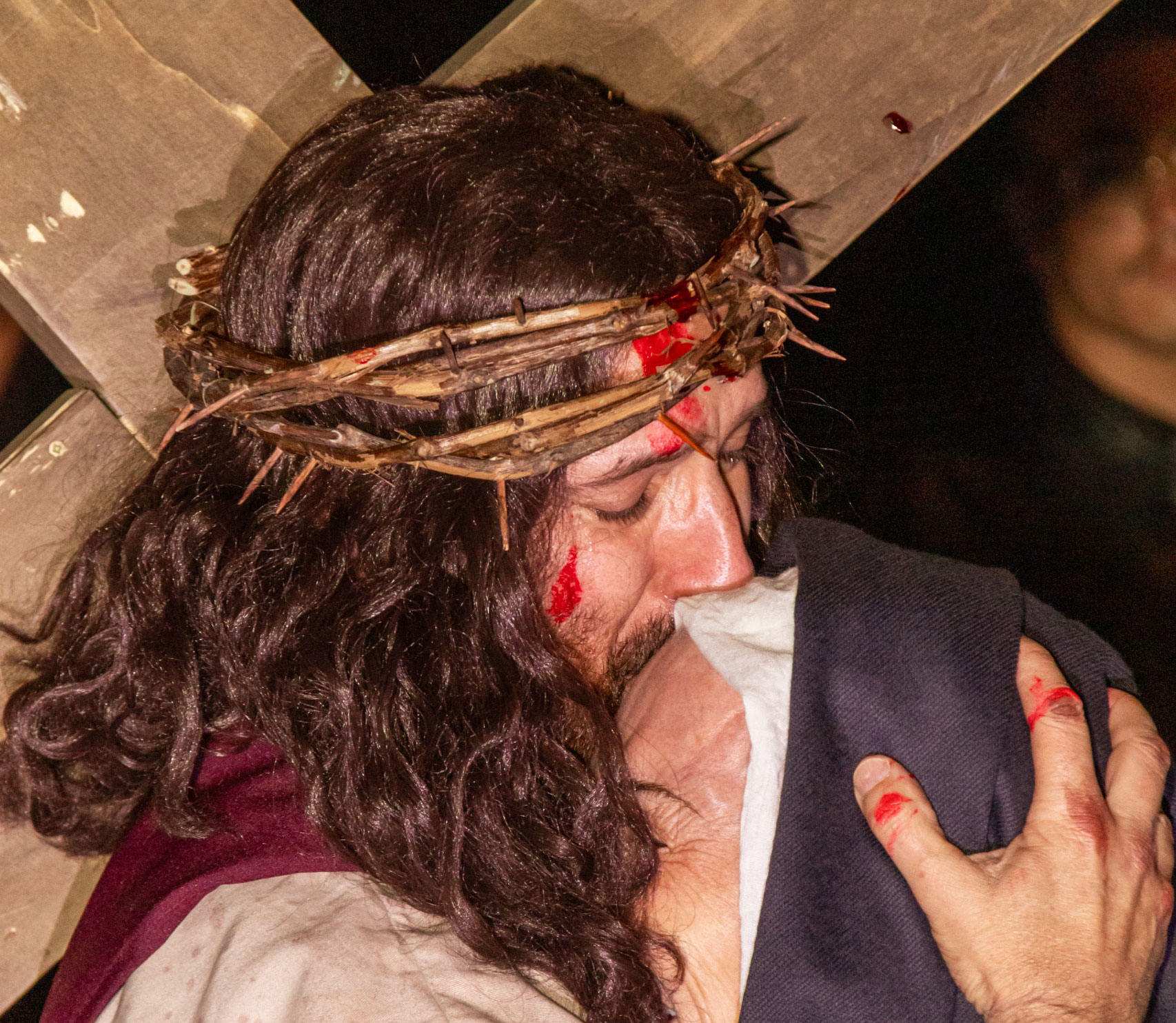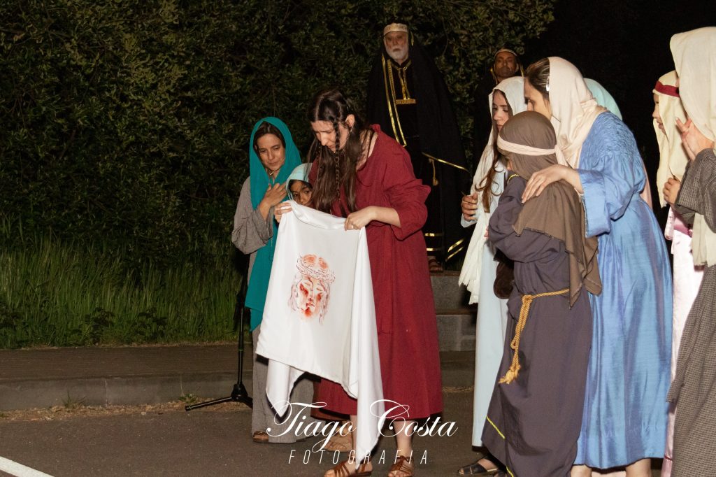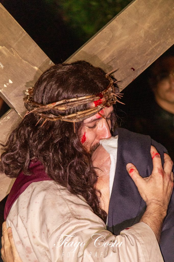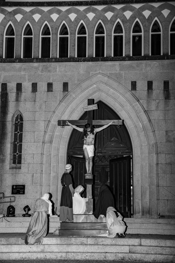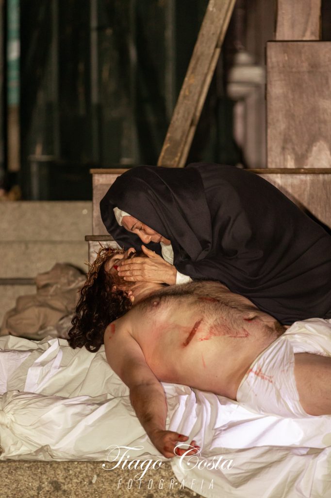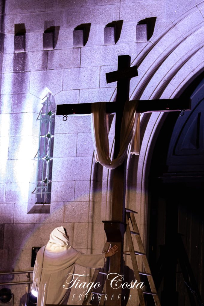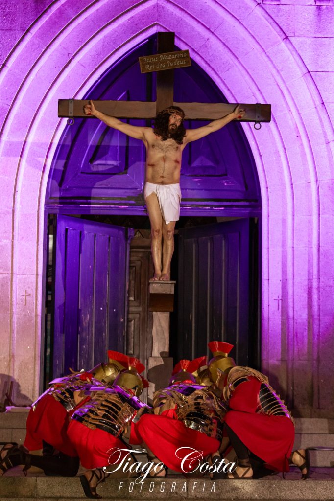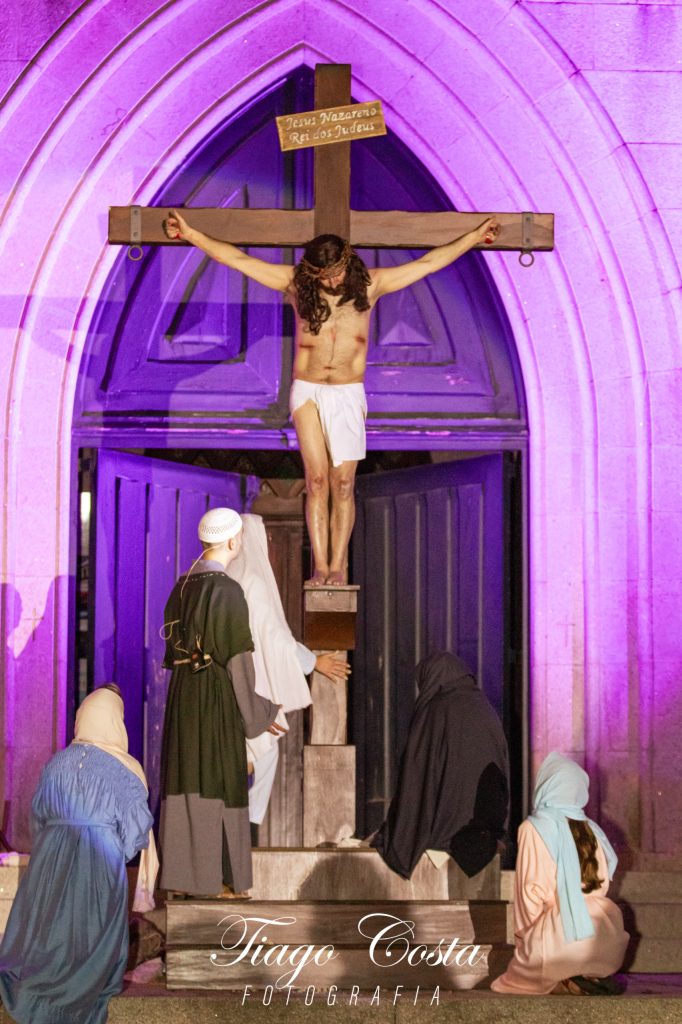 Chegados à Igreja dos Passionistas, Jesus é crucificado entre dois malfeitores, proclama as suas últimas palavras e expira, morrendo. O ambiente é pesado, a tristeza e a comoção enchem o rosto dos diversos atores. Cristo é descido da Cruz, recostado no regaço de sua mãe e sepultado. Contudo, as cores da manhã enchem o local, as mulheres dirigem-se ao sepulcro para ungir o corpo, mas já não o necessitam de fazer pois o sepulcro está vazio. Jesus ressuscitou e deixa a sua mensagem de esperança a todos os presentes.