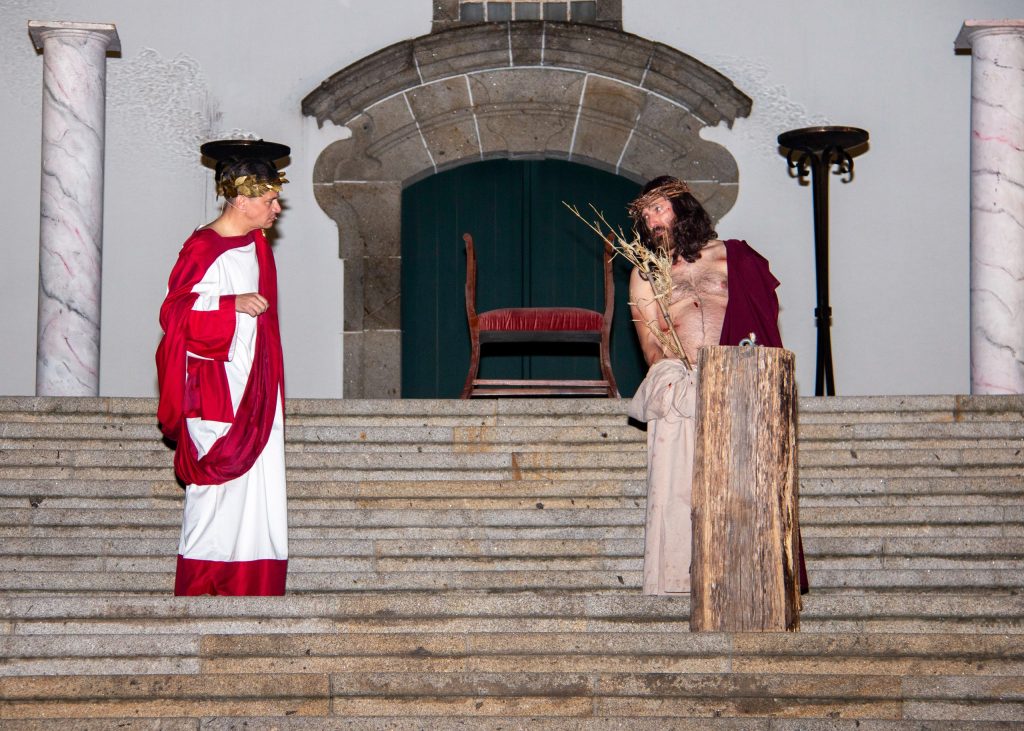 O tempo ameno e a noite agradável permitiram que, por volta das 21h, na Escadaria da Igreja Paroquial de Barroselas, se desse início ao julgamento de Jesus no Pretório de Pilatos, onde o povo hostilizado pelos Sumo-Sacerdotes exige a morte e a crucifixão de Jesus, sendo até liberdade de um assassino, Barrabás, trocada pela sua flagelação. Apesar dos pedidos de justiça por parte dos seguidores de Jesus e da própria mulher de Pilatos, o governador lava as mãos e entrega o Nazareno aos intentos do povo. Abre-se, então, o cortejo em direção à Igreja dos Passionistas, o local do Calvário. Ao longo do percurso vão acontecendo algumas paragens a motivo das quedas de Jesus sob o peso da Cruz ou pelo encontro com algumas personagens, como a Verónica que lhe limpa o rosto, Maria que o quer confortar, Simão que o ajuda a carregar a Cruz ou o povo que discute a pertinência de tal acontecimento, convidando o espectador a uma reflexão.