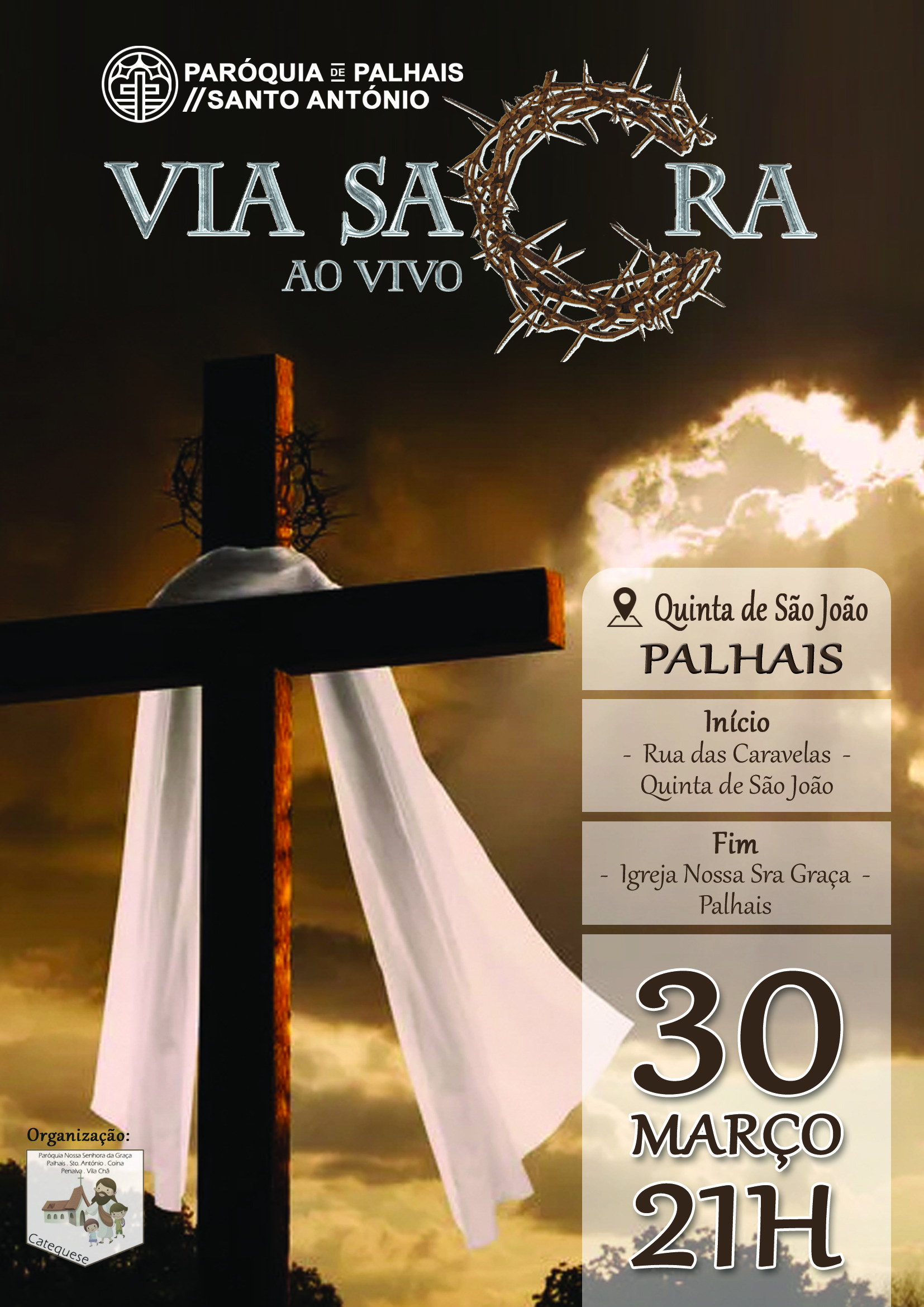 No próximo dia 30 de março, pelas 21:00, irá realizar-se a Via Sacra ao Vivo, na Paróquia de Palhais/Santo António.